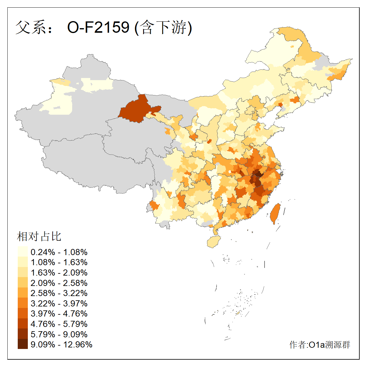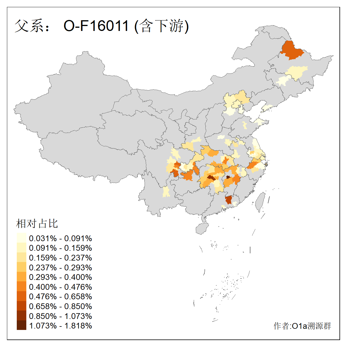| O-F1876_O-F2159_O-F1867_O-F852_O-F2266_O-F16011 | 6010 | 0.080% | 176人(含下游) 李:21 张:10 刘:9 陈:8 夏:7 陆:7 朱:6 谢:6 徐:5 杨:5 钟:5 吴:4 熊:4 王:4 ![]() | 18人(不含下游) 李:3 陆:3 范:2 黄:2 刘:1 杨:1 楚:1 王:1 田:1 许:1 赵:1 陈:1 ![]() |