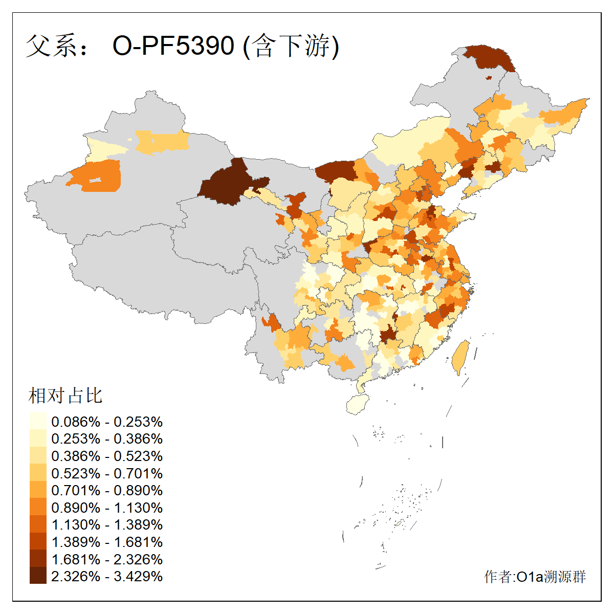 | O-F1876_O-F2159_O-F915_O-F1478_O-PF5390 | 7300 | 0.595% | 1519人(含下游) 张:129 王:123 李:101 刘:82 陈:48 孙:41 杨:41 赵:38 马:32 吴:31 周:28 罗:22 徐:20 史:19 ![]() | 89人(不含下游) 李:23 张:17 王:7 曹:4 赵:4 朱:3 孙:2 陈:2 马:2 黄:2 亢:1 吴:1 夏:1 姜:1 ![]() |