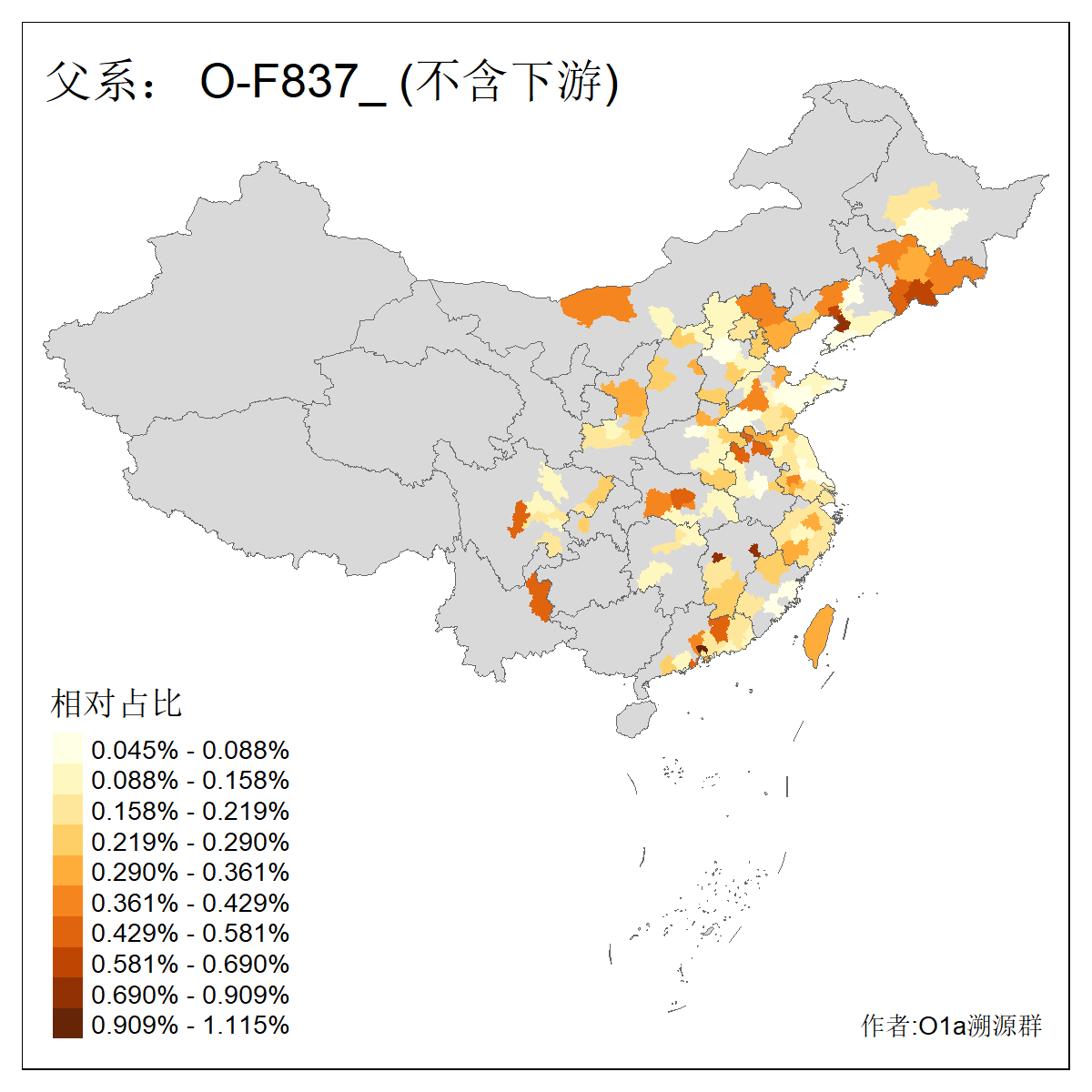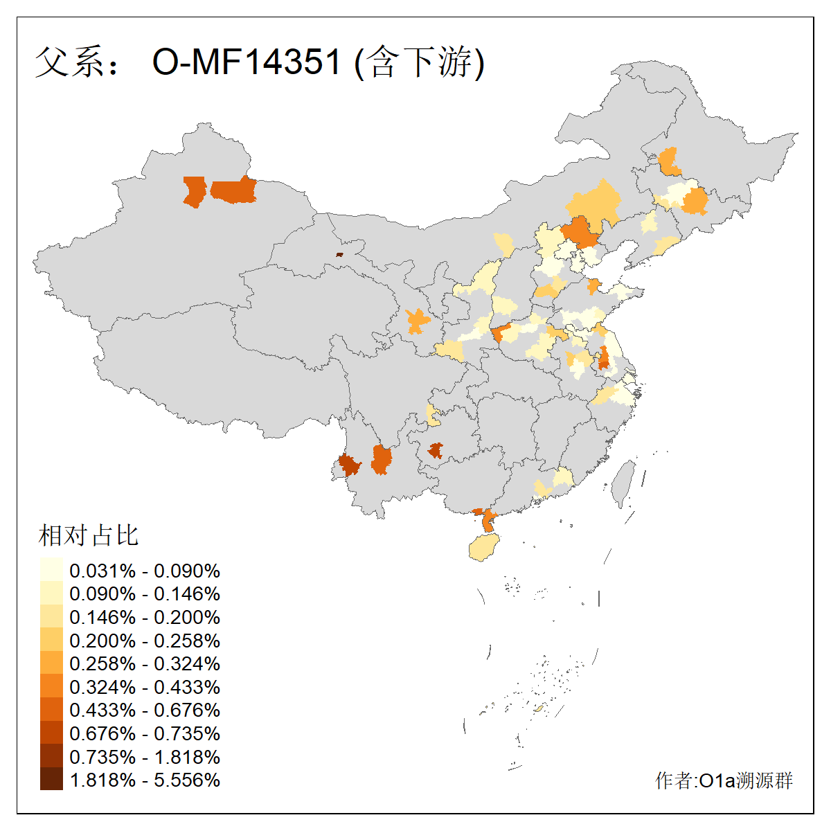 | O-F742_O-F1150_O-F2310_O-F837_O-Y29783_O-CTS2334_O-MF14167_O-Y29792_O-Y173835_O-Y173834 | 3660 | 0.169% | 483人(含下游) 刘:40 孙:34 张:28 于:26 王:26 陈:22 李:20 丁:15 章:12 周:10 徐:8 黄:8 赵:7 吴:6 ![]() | 80人(不含下游) 王:13 张:8 于:5 刘:5 李:5 戴:3 徐:2 林:2 解:2 金:2 陈:2 隋:2 黄:2 任:1 ![]() |