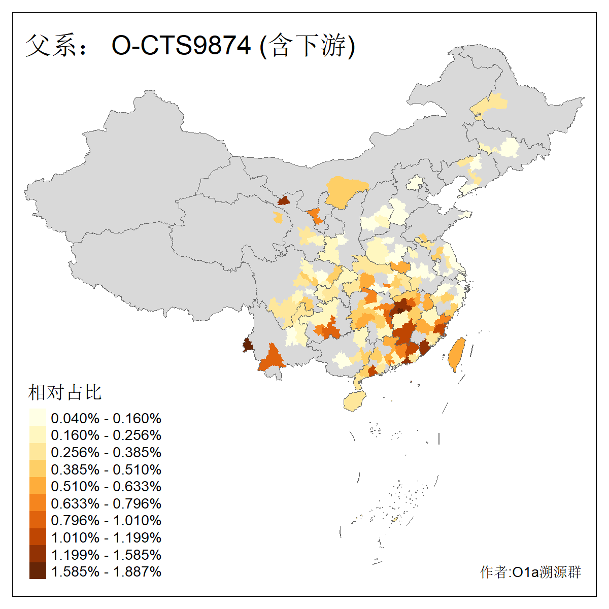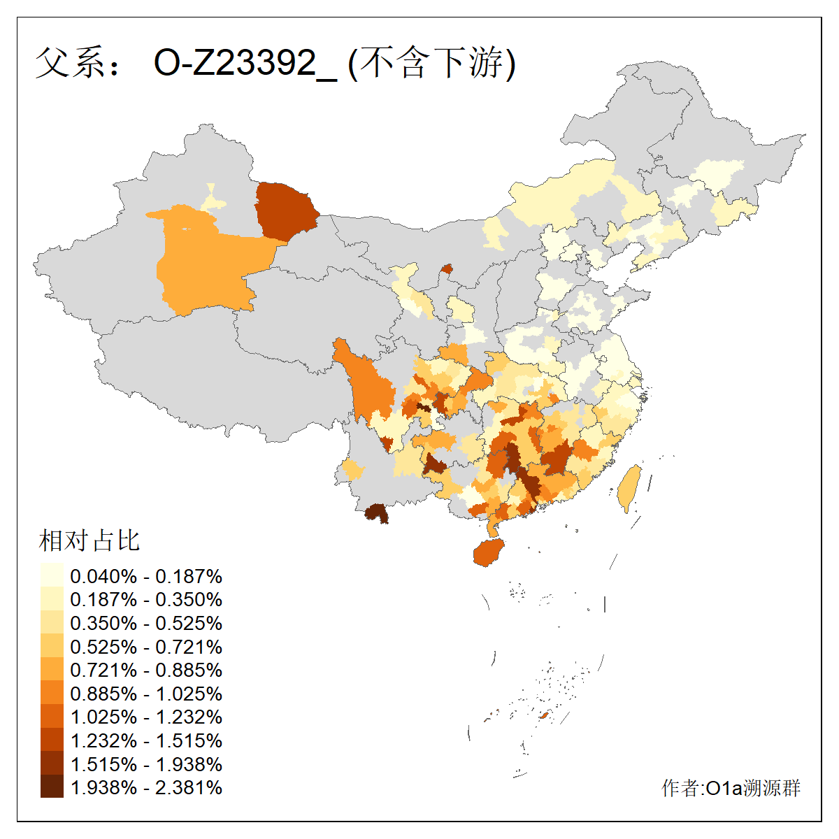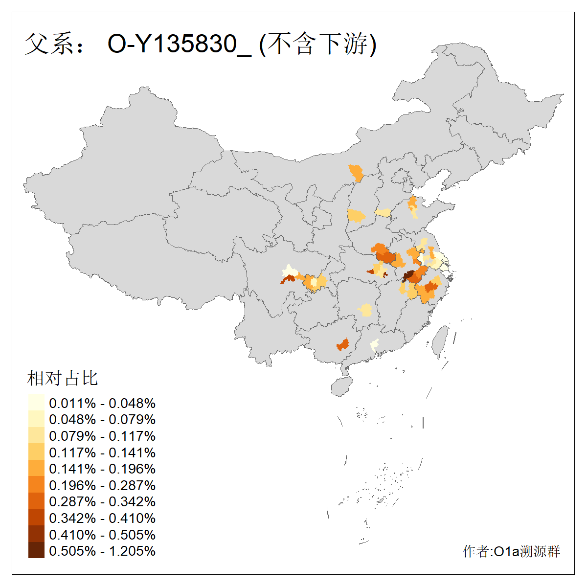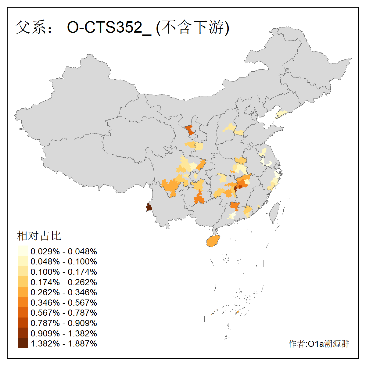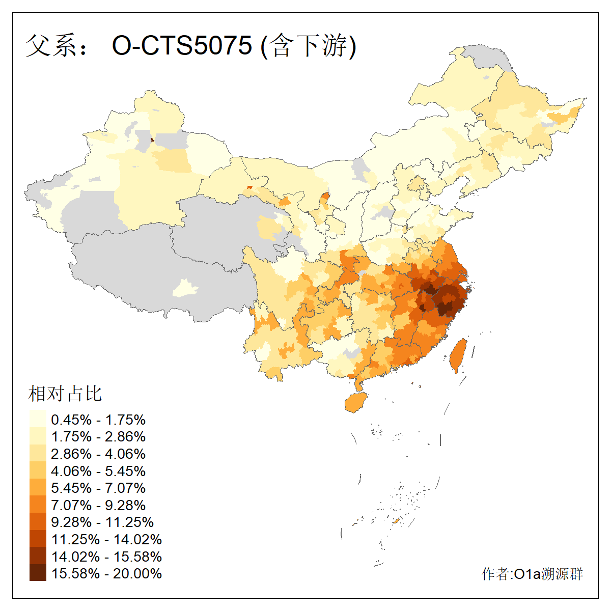 | O-M119_O-F1_O-Z23193_O-M307_O-CTS8423 | 10340 | 2.754% | 6436人(含下游) 李:404 王:353 陈:338 张:332 刘:236 徐:236 杨:184 罗:182 黄:165 何:150 周:142 吴:139 顾:130 朱:110 ![]() | 211人(不含下游) 王:15 陈:13 张:11 孙:8 杨:8 徐:7 李:7 顾:7 刘:6 吴:5 周:5 邵:5 何:4 高:4 ![]() |