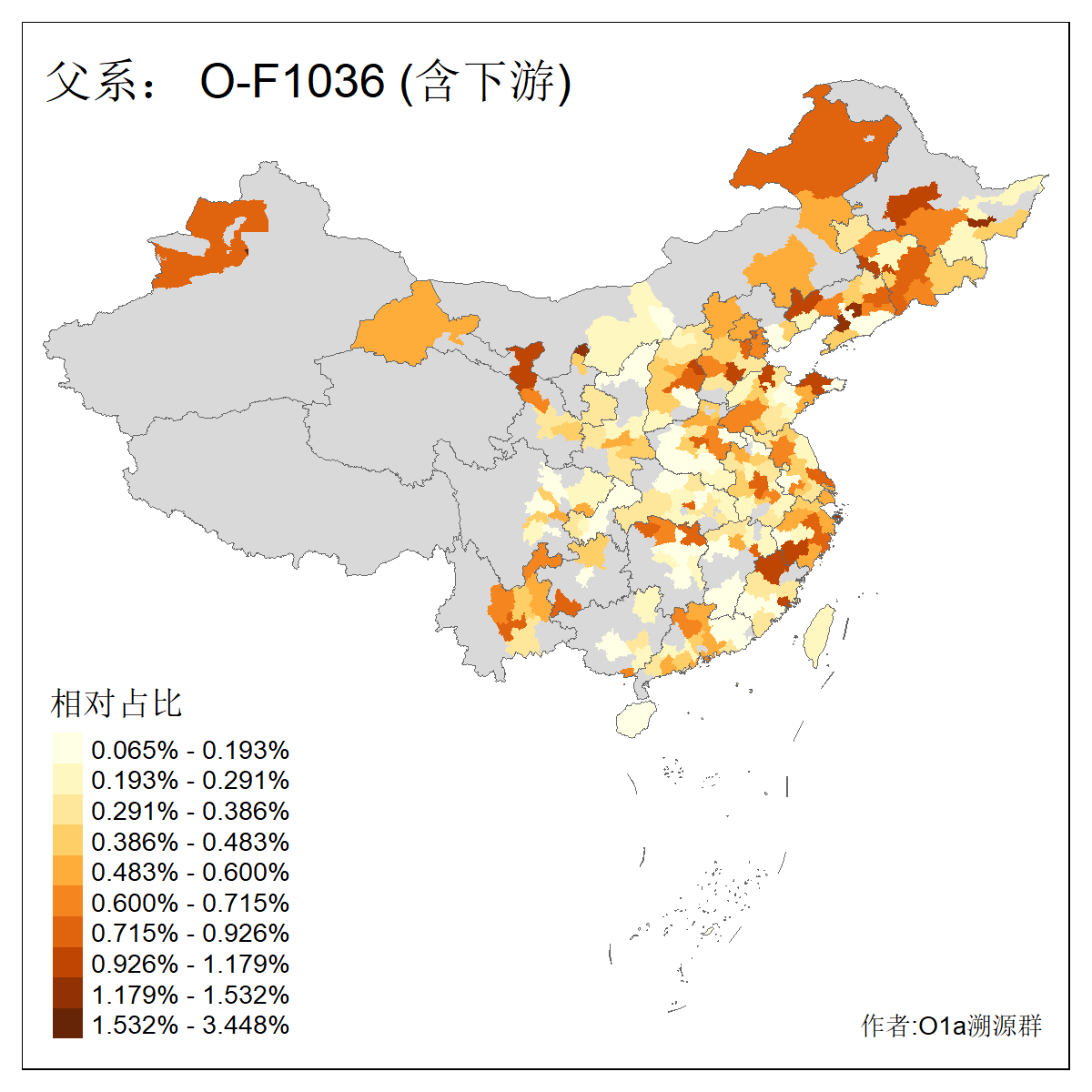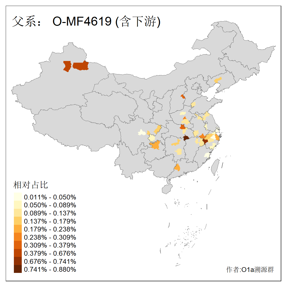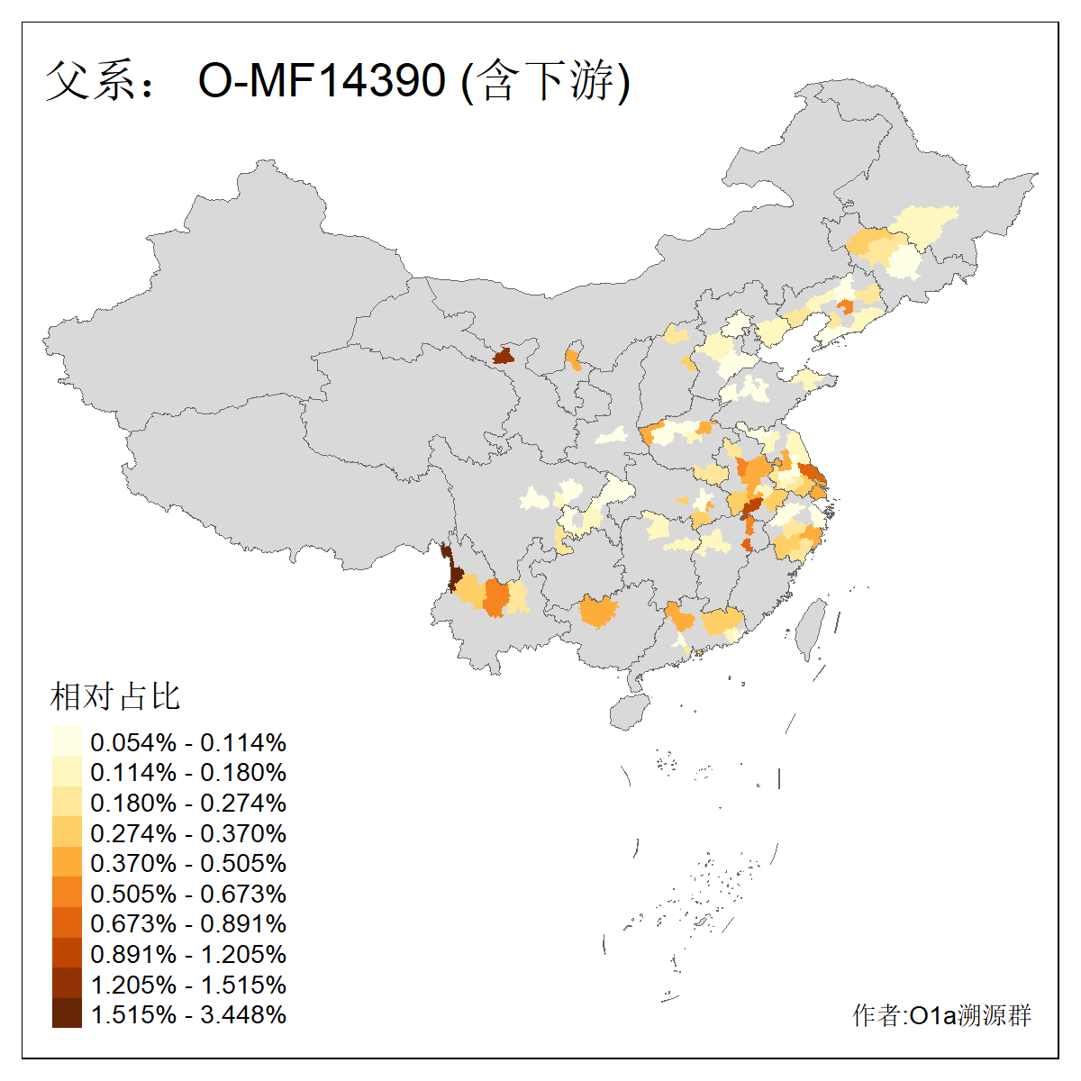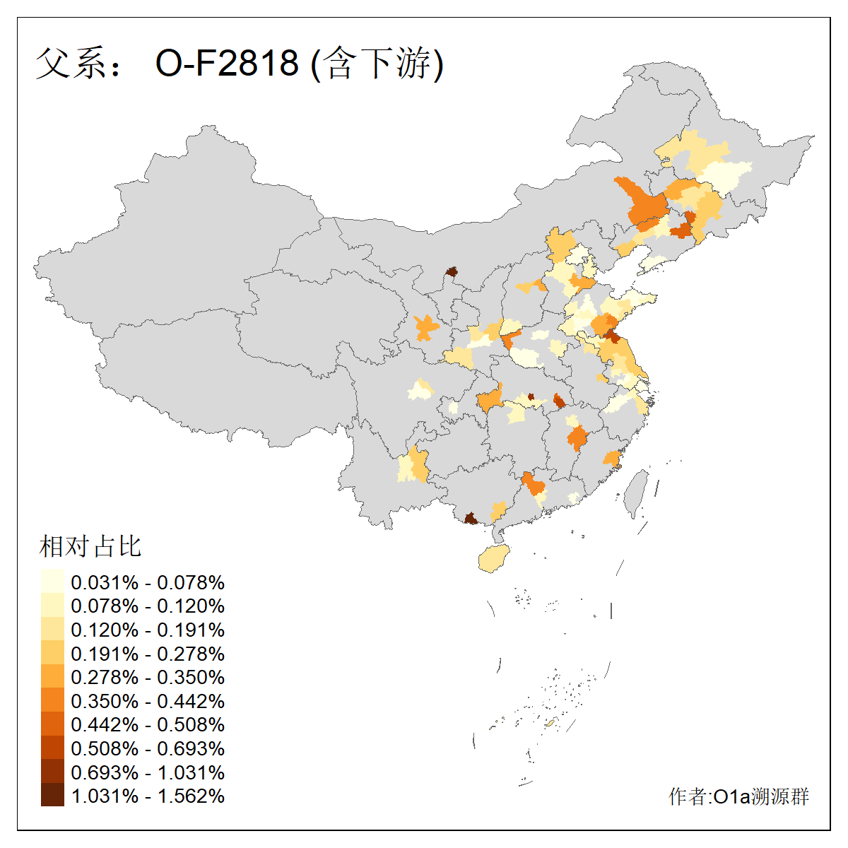 | O-M119_O-F1_O-F1036_O-F1009 | 5330 | 0.286% | 765人(含下游) 张:62 王:57 李:53 徐:30 刘:27 孙:22 杨:22 宋:21 朱:18 陈:18 高:16 吕:15 周:13 秦:11 ![]() | 2人(不含下游) 李:1 石:1 ![]() |