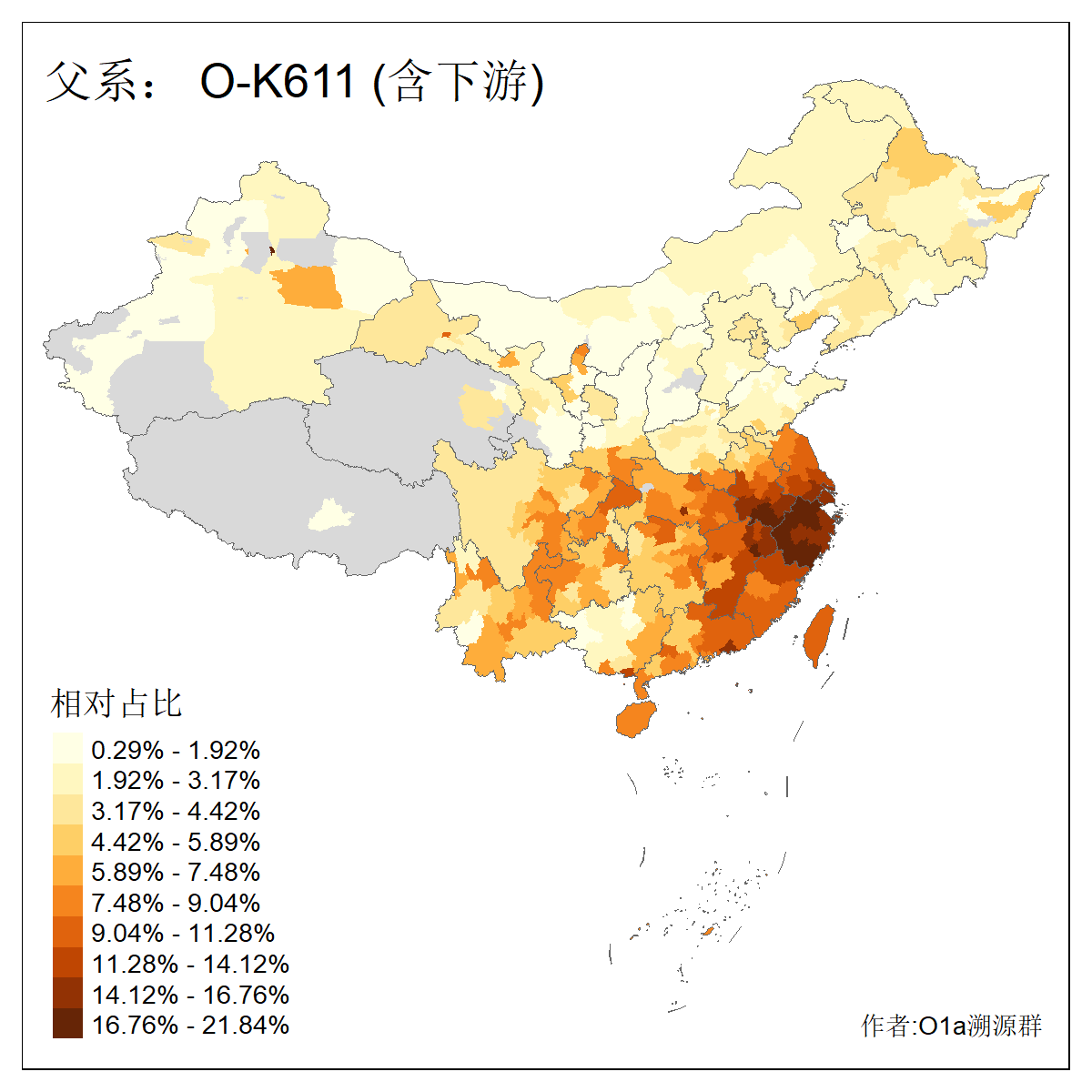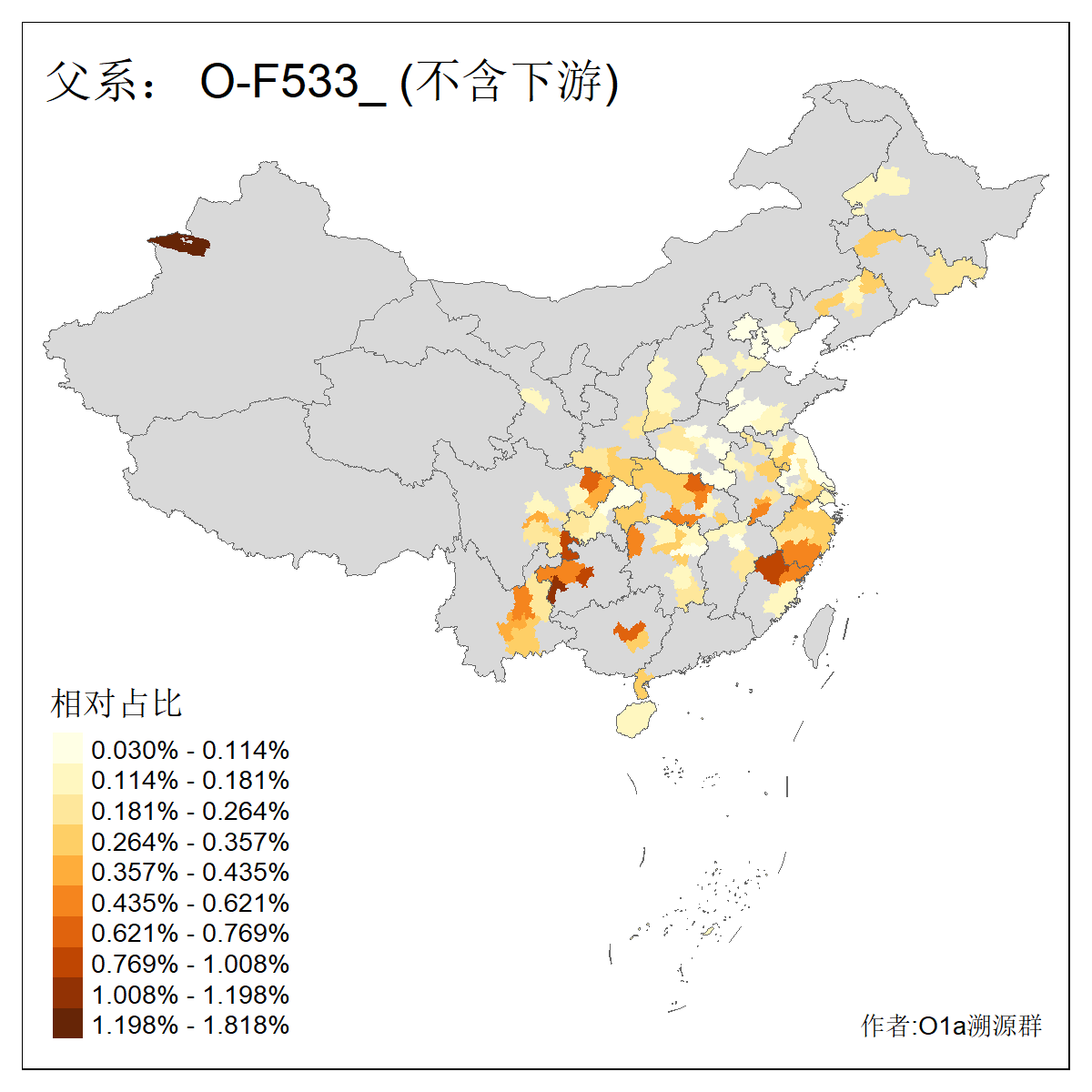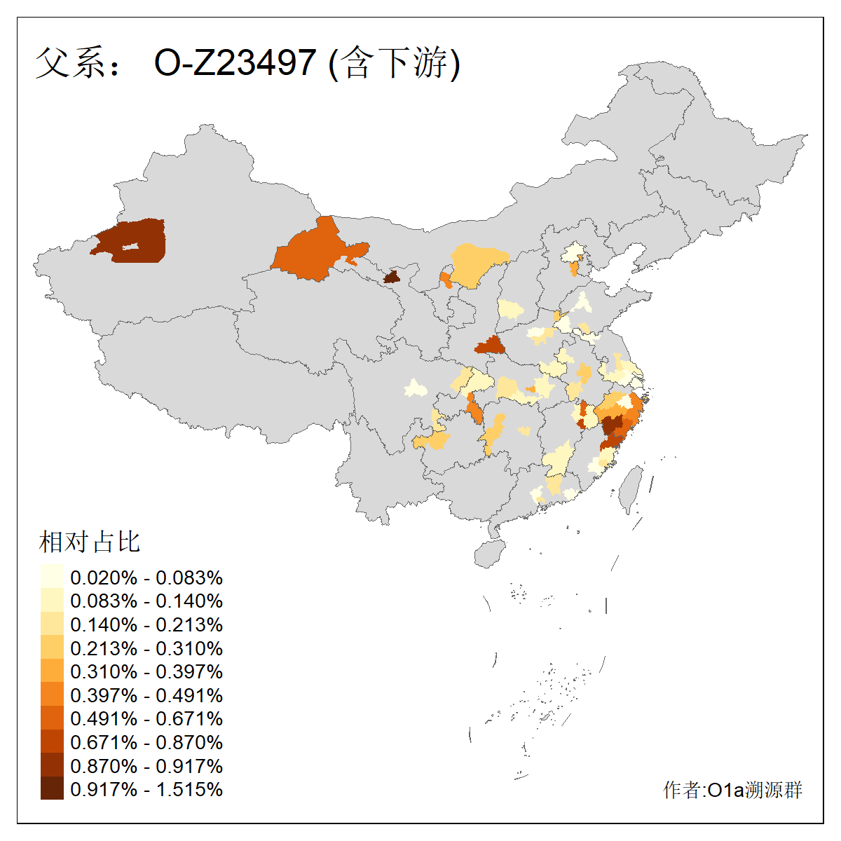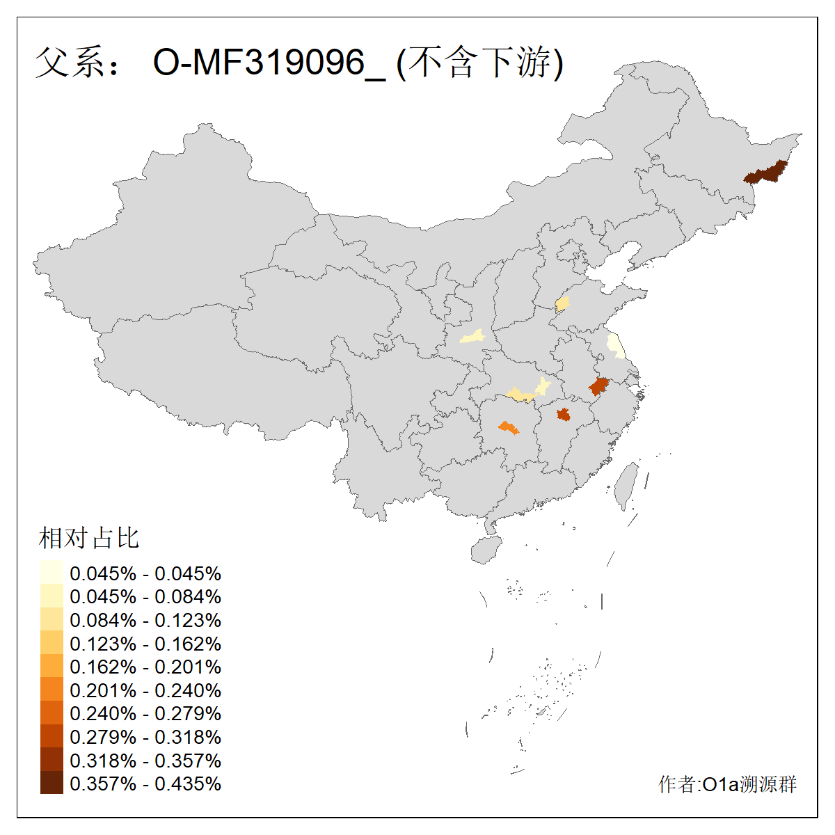 | O-M119_O-F1_O-F1036_O-F1009 | 5330 | 0.286% | 765人(含下游) 张:62 王:57 李:53 徐:30 刘:27 孙:22 杨:22 宋:21 朱:18 陈:18 高:16 吕:15 周:13 秦:11 ![]() | 2人(不含下游) 李:1 石:1 ![]() |