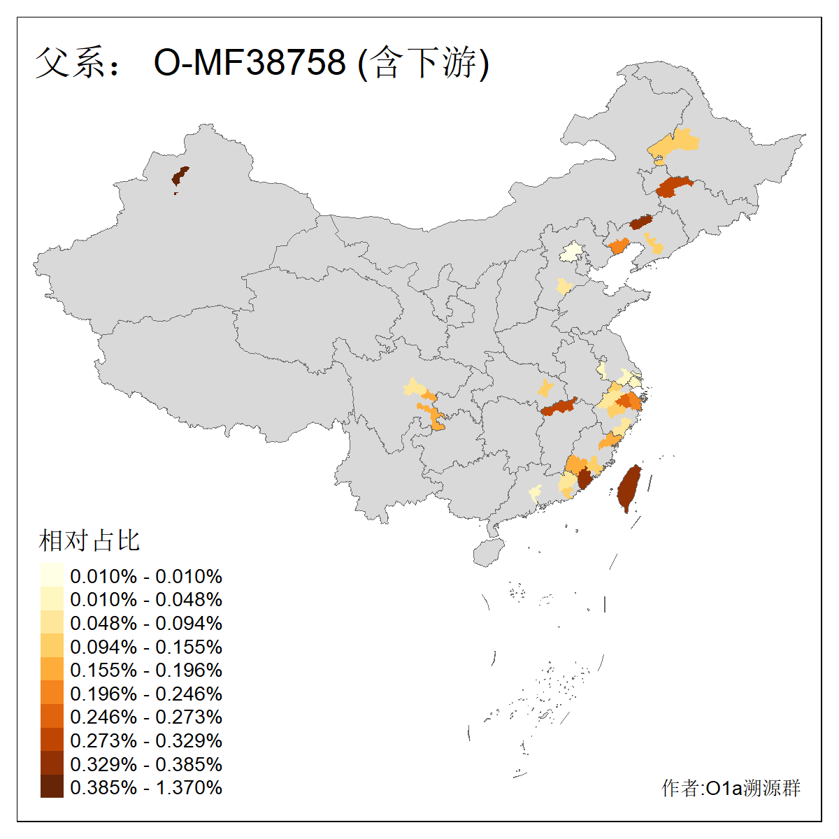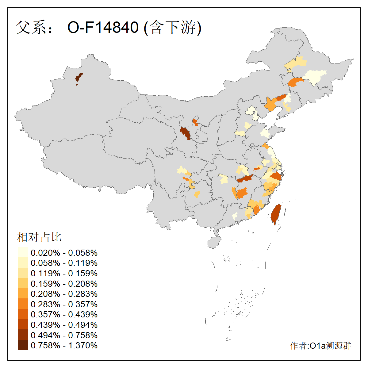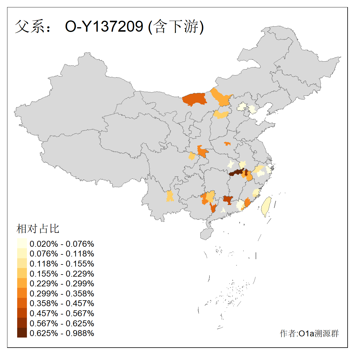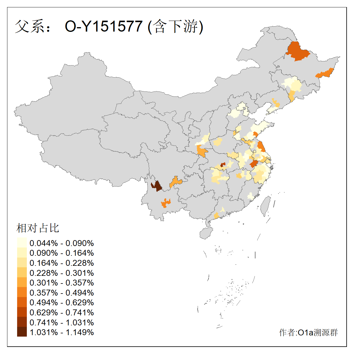 | O-M119_O-F1_O-F1036_O-F1009 | 5330 | 0.286% | 765人(含下游) 张:62 王:57 李:53 徐:30 刘:27 孙:22 杨:22 宋:21 朱:18 陈:18 高:16 吕:15 周:13 秦:11 ![]() | 2人(不含下游) 李:1 石:1 ![]() |