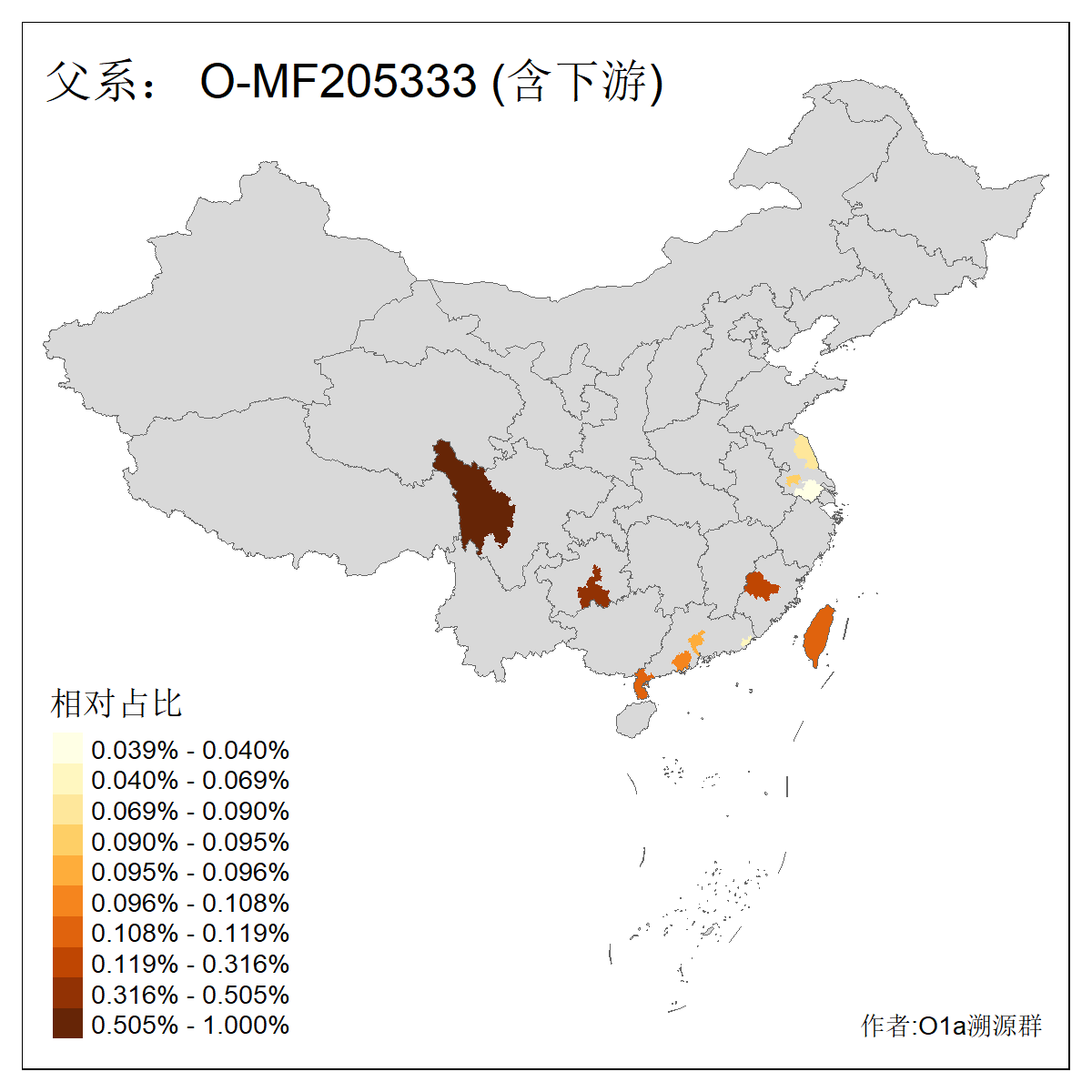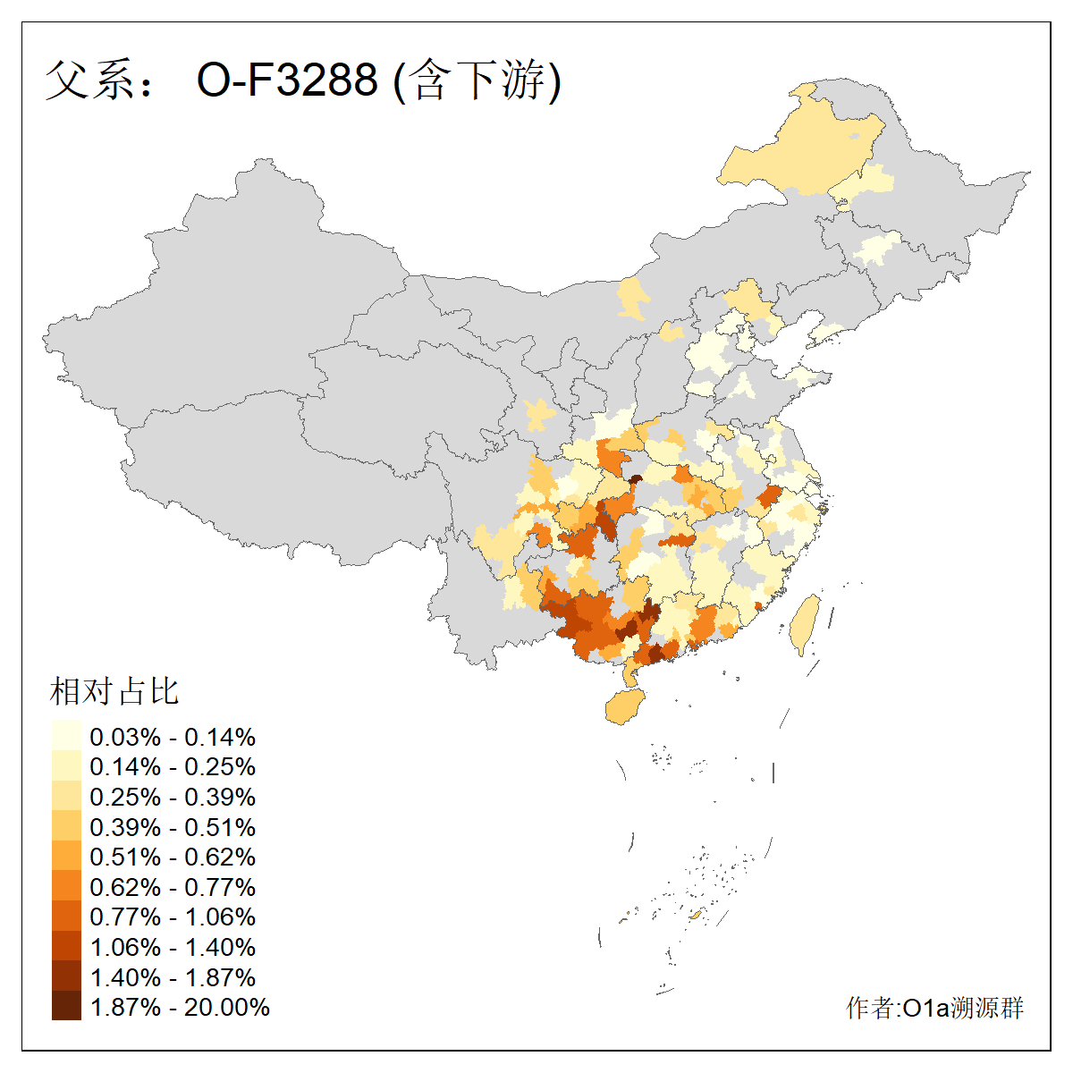 | O-M119_O-F1_O-F3288 | 5550 | 0.195% | 368人(含下游) 黄:30 陈:21 李:20 张:17 刘:16 吴:13 周:11 王:11 彭:8 苏:8 何:7 冯:7 赵:7 骆:7 ![]() | 30人(不含下游) 刘:3 袁:3 周:2 彭:2 肖:2 陈:2 丁:1 伍:1 夏:1 易:1 曹:1 曾:1 朱:1 杜:1 ![]() |