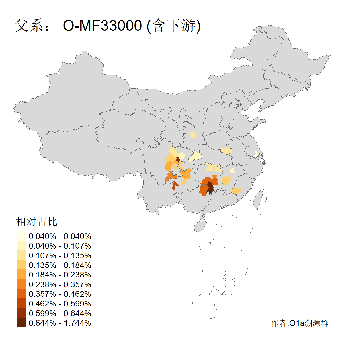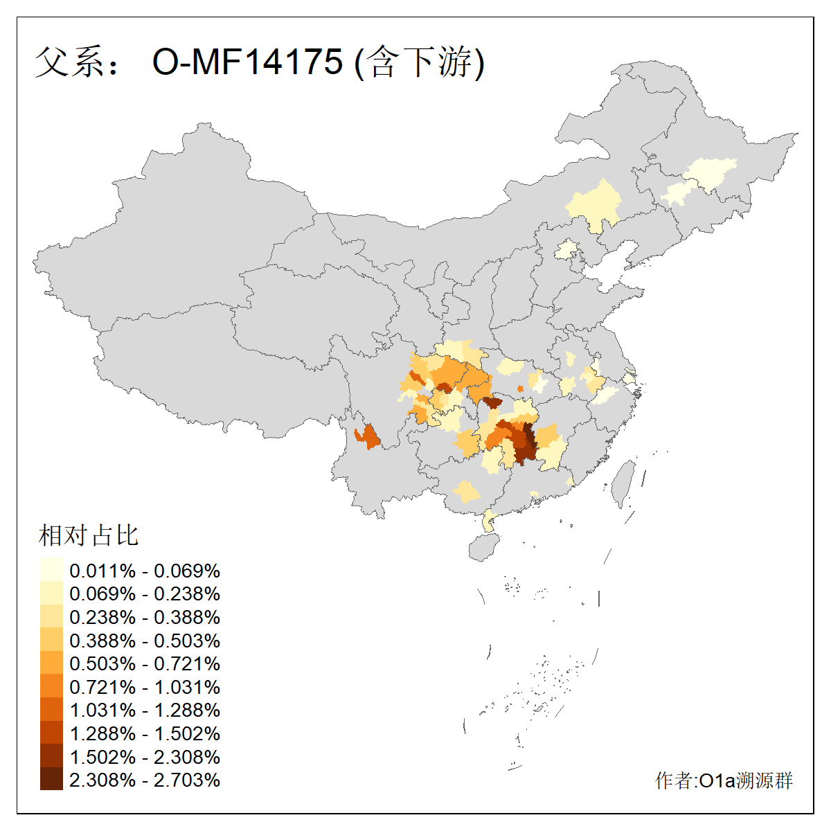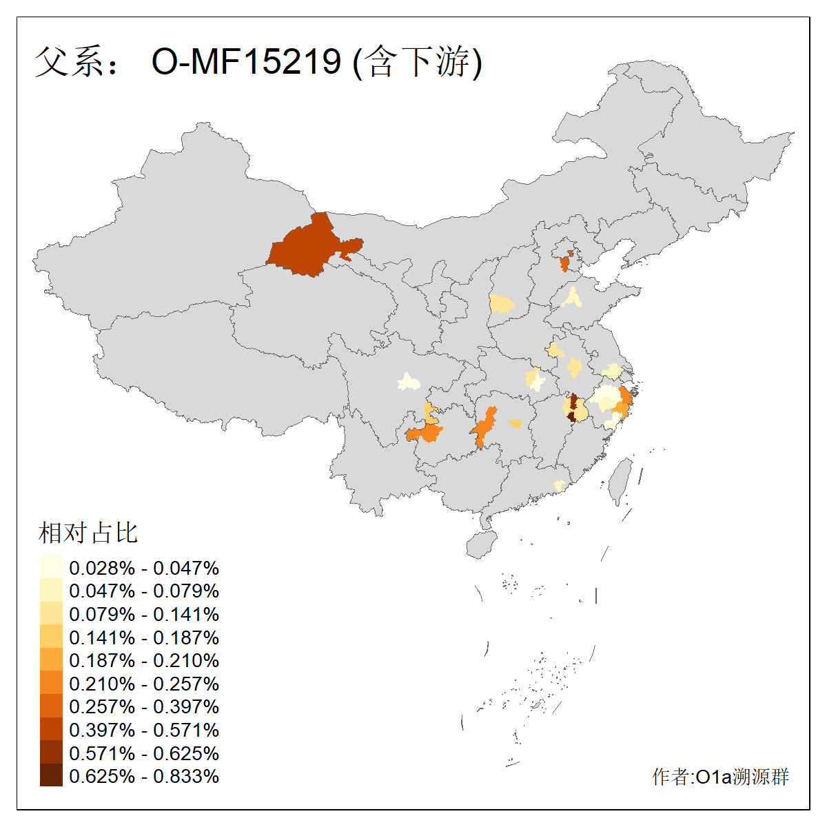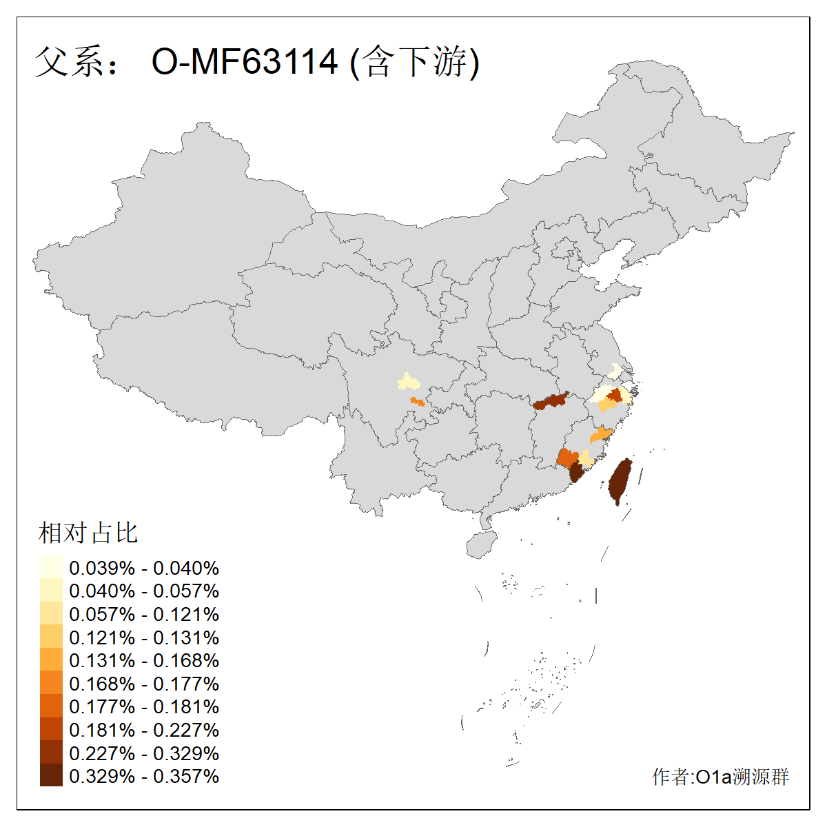 | O-M119_O-F1_O-Z23193_O-M307_O-F446_O-Z23448_O-F140_O-K611_O-F206_O-F78_O-F81_O-MF1075_O-MF1081_O-MF36656 | 1570 | 0.026% | 9人(含下游) 杨:2 刘:1 李:1 缪:1 袁:1 贡:1 赵:1 陶:1 ![]() | 4人(不含下游) 刘:1 李:1 杨:1 缪:1 ![]() |