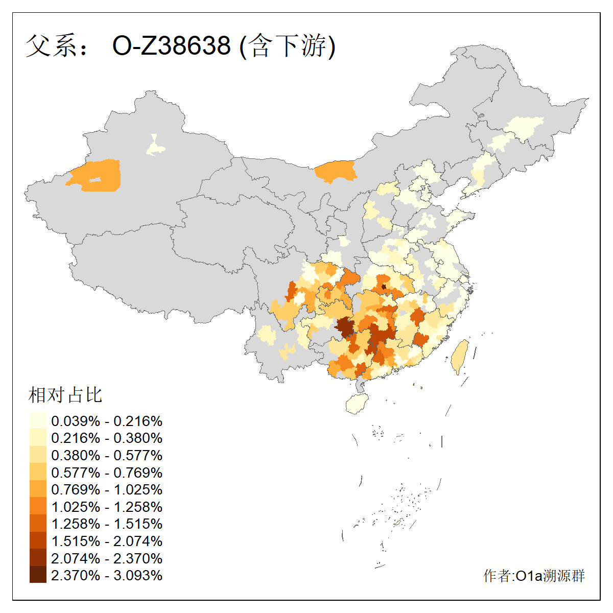 | O-M119_O-F1_O-Z23193_O-M307 | 10730 | 10.309% | 25827人(含下游) 陈:1489 王:1417 李:1367 张:1335 刘:863 杨:768 吴:654 黄:653 徐:621 周:576 朱:439 胡:392 何:387 林:382 ![]() | 2人(不含下游) 沈:1 ![]() |