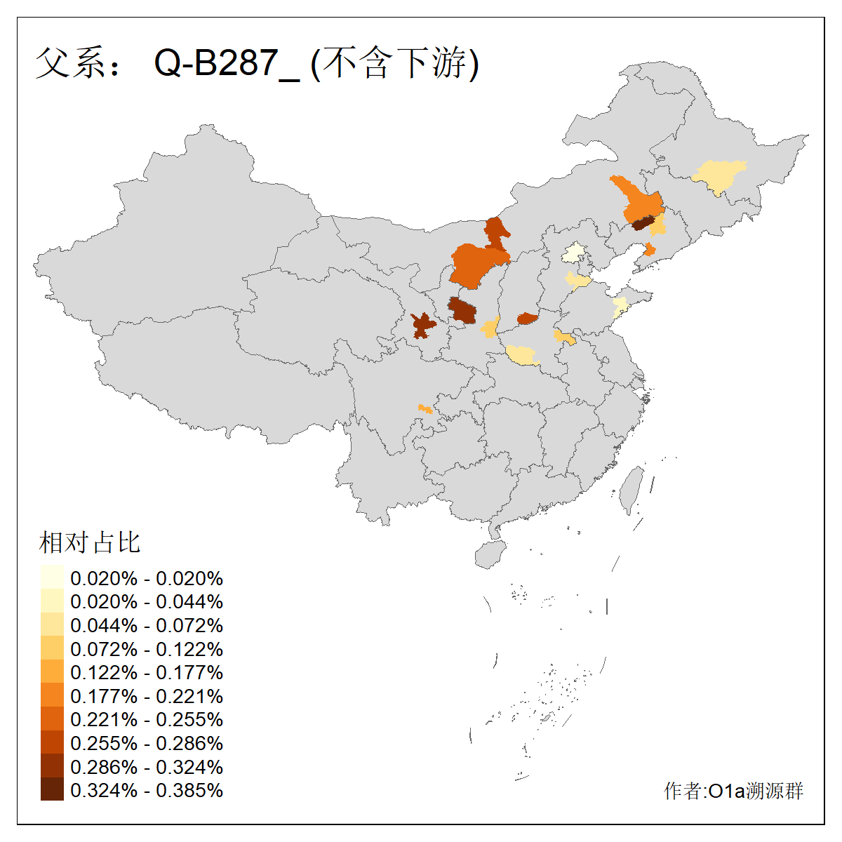 | Q_Q-L472_Q-M346_Q-L53_Q-L54_Q-L330_Q-B287 | 4100 | 0.057% | 38人(含下游) 刘:5 张:4 王:3 周:2 田:2 白:2 肖:2 贾:2 关:1 尹:1 崔:1 时:1 景:1 李:1 ![]() | 19人(不含下游) 张:2 白:2 肖:2 贾:2 关:1 周:1 尹:1 李:1 柴:1 甘:1 田:1 窦:1 邢:1 郑:1 ![]() |