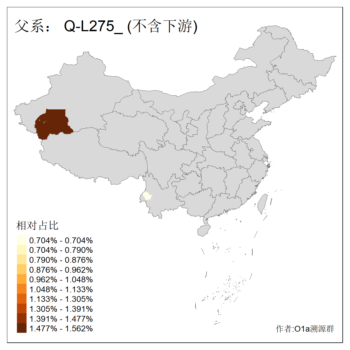 | Q_Q-L275 | 15420 | 0.089% | 108人(含下游) 李:13 马:13 杨:5 艾:5 黄:5 张:4 沙:3 石:3 赵:3 高:3 余:2 努:2 康:2 王:2 ![]() | 2人(不含下游) 张:1 艾:1 ![]() |
