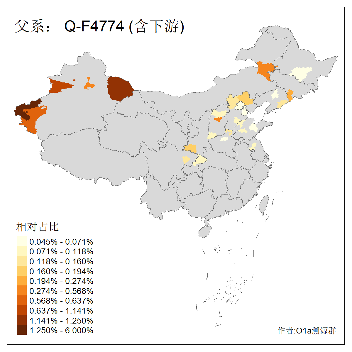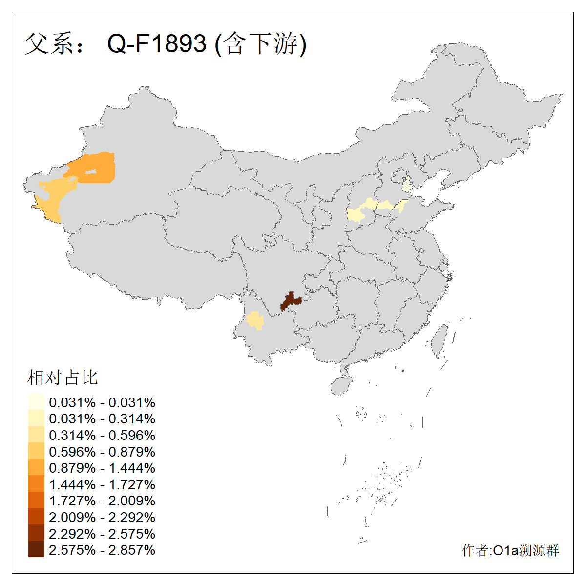| Q_Q-L472_Q-M346_Q-Y2659_Q-F4674_Q-F4774 | 15960 | 0.023% | 42人(含下游) 张:8 洪:6 王:4 陈:3 亚:2 杨:2 艾:2 何:1 凯:1 刘:1 包:1 奴:1 木:1 李:1 ![]() | 16人(不含下游) 洪:6 张:2 凯:1 包:1 奴:1 秦:1 艾:1 连:1 陈:1 ![]() |