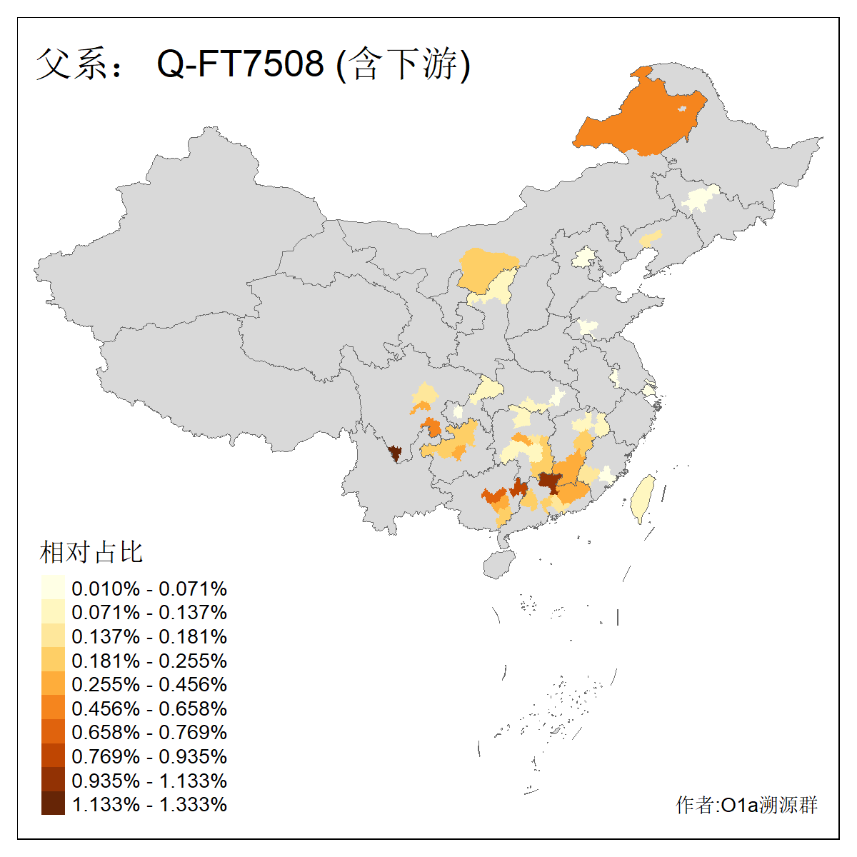 | Q_Q-L472_Q-F1096_Q-F746_Q-M120_Q-Y630_Q-Z19154_Q-FT7001_Q-FT8042 | 4380 | 0.089% | 165人(含下游) 李:20 朱:17 王:14 张:12 于:7 陈:7 杨:6 胡:6 郭:6 丁:4 曾:4 苗:4 钟:4 刘:3 ![]() | 78人(不含下游) 李:12 张:10 王:9 杨:4 郭:4 丁:3 于:3 柳:2 苗:2 赵:2 郑:2 亭:1 冯:1 刘:1 ![]() |