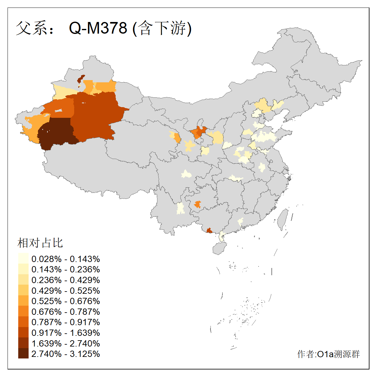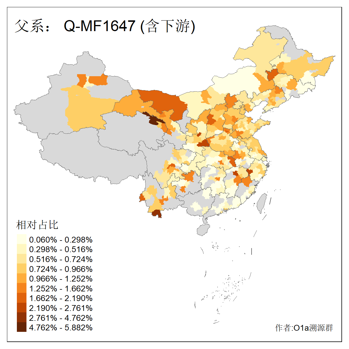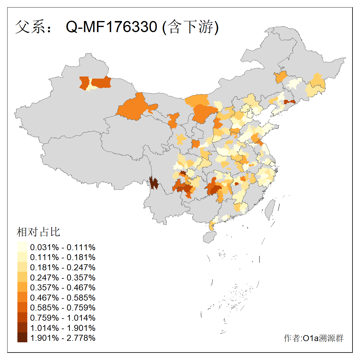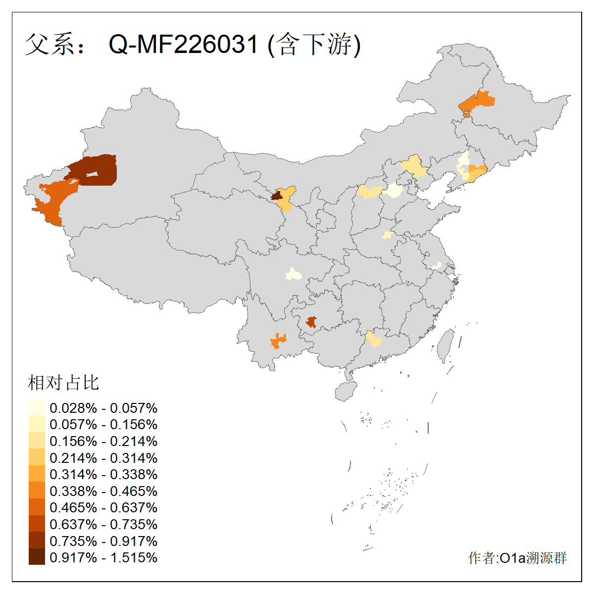 | Q_Q-L275_Q-F1213_Q-Y2076_Q-M378 | 8280 | 0.032% | 57人(含下游) 李:9 马:5 杨:4 高:3 余:2 康:2 张:2 艾:2 金:2 阿:2 陈:2 任:1 傅:1 刘:1 ![]() | 1人(不含下游) 阿:1 ![]() |