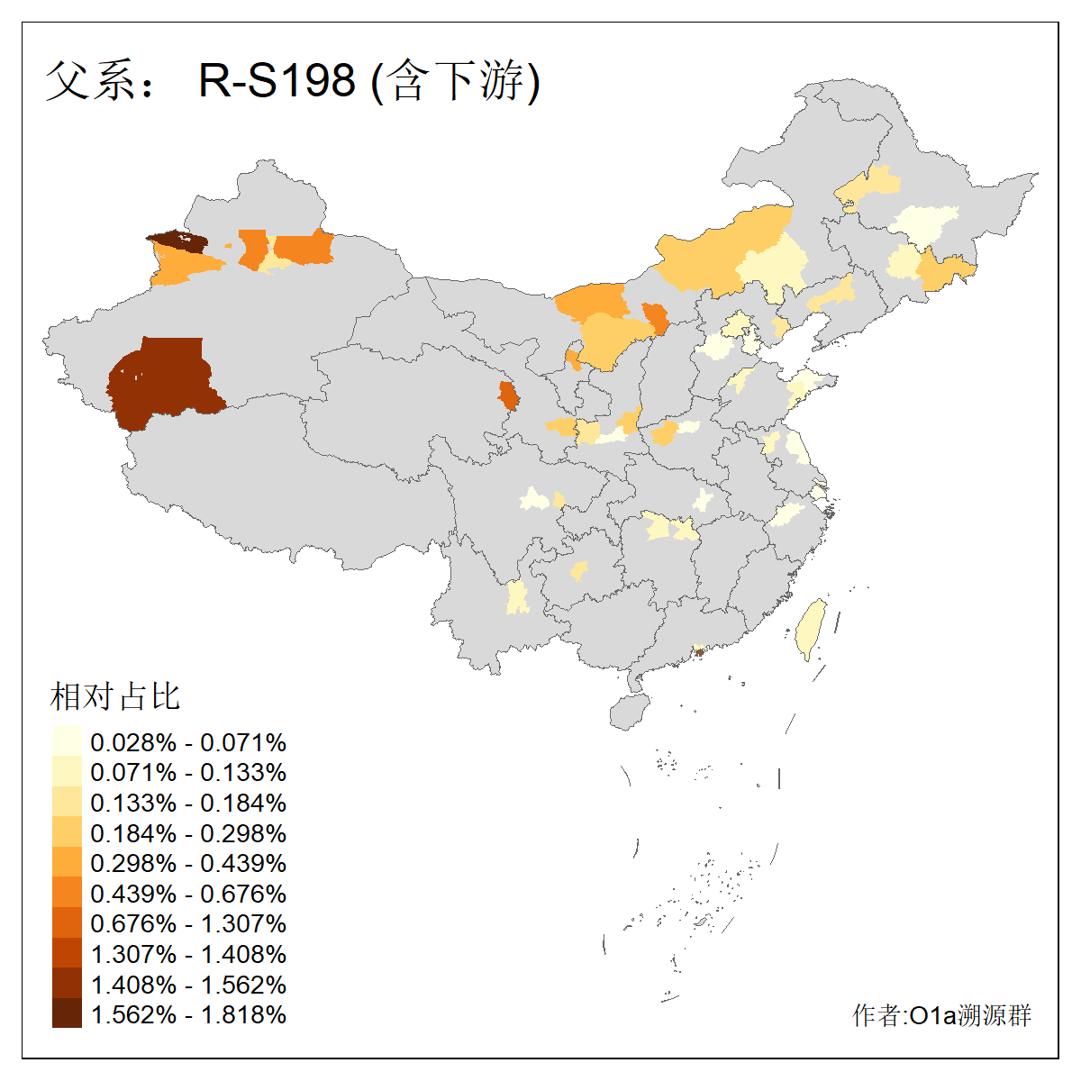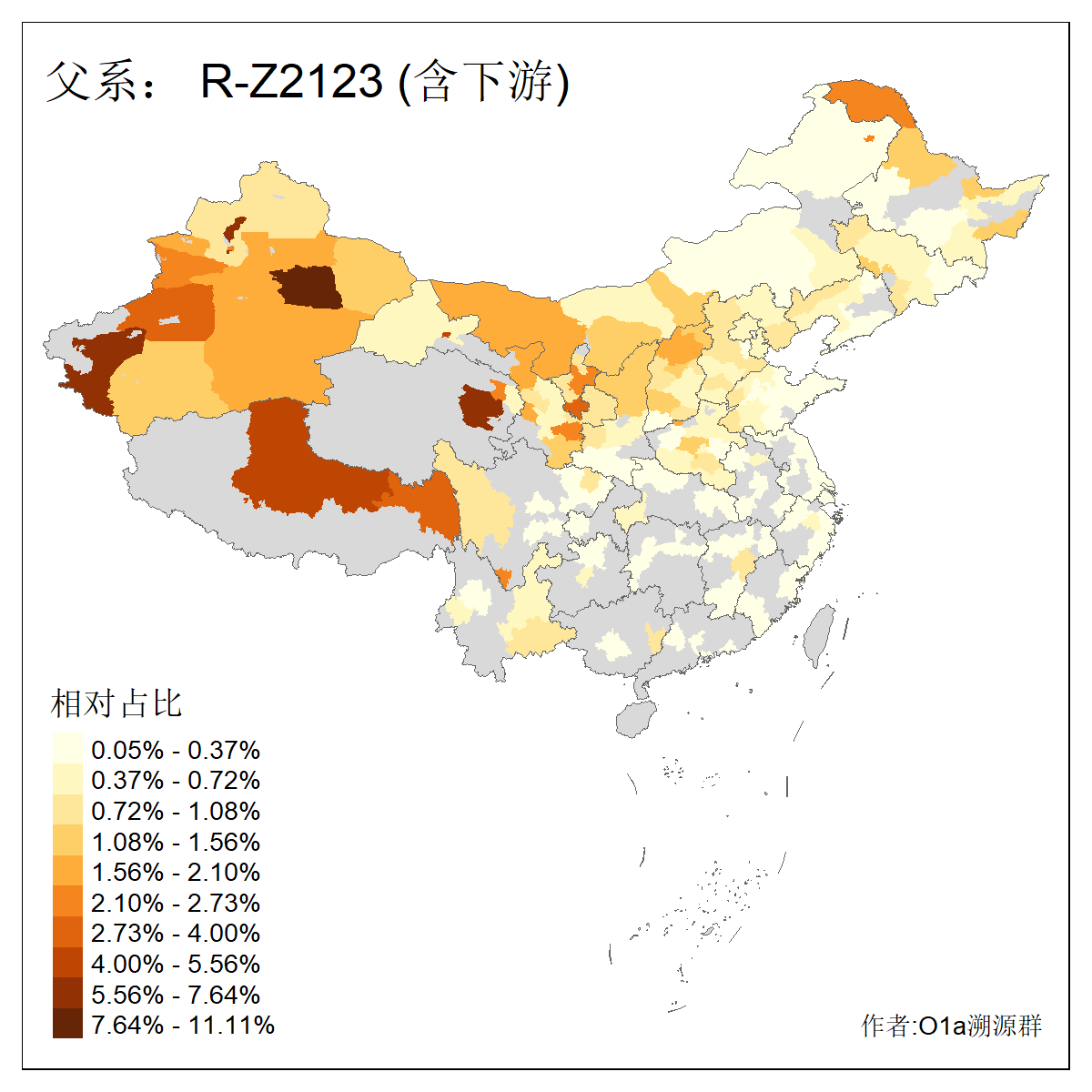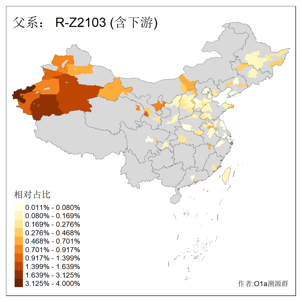 | R_R-Y482_R1_R1a_R-M459_R-M198_R-M417_R-PF6162_R-F992_R-F3105_R-Z2124_R-S4576 | 4160 | 0.100% | 212人(含下游) 王:18 张:17 李:12 卓:10 马:10 刘:9 白:9 陈:9 徐:6 胡:6 高:6 杨:5 赵:5 郑:4 ![]() | 36人(不含下游) 王:4 张:3 白:3 雷:3 马:2 克:1 吴:1 察:1 屈:1 康:1 徐:1 施:1 曹:1 李:1 ![]() |