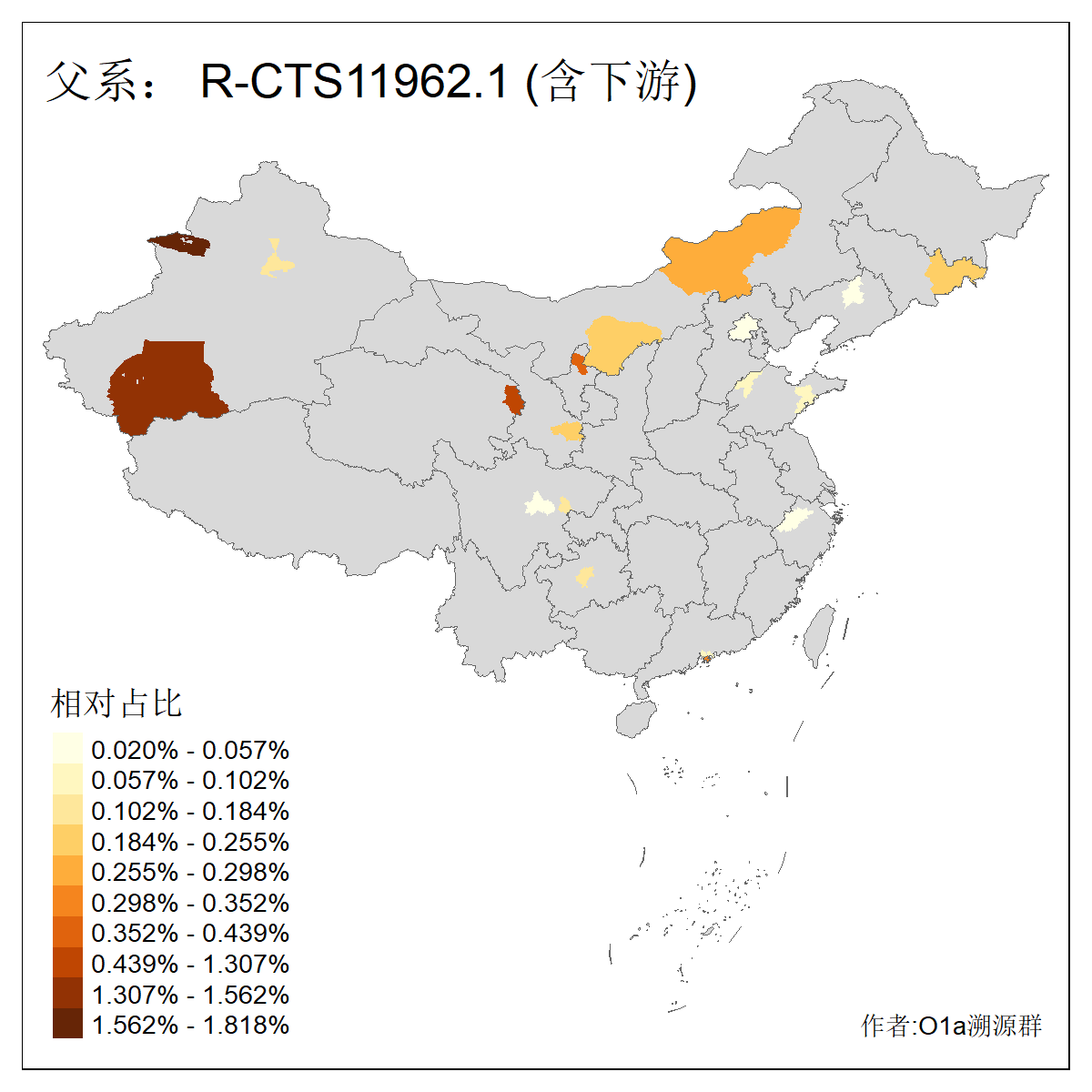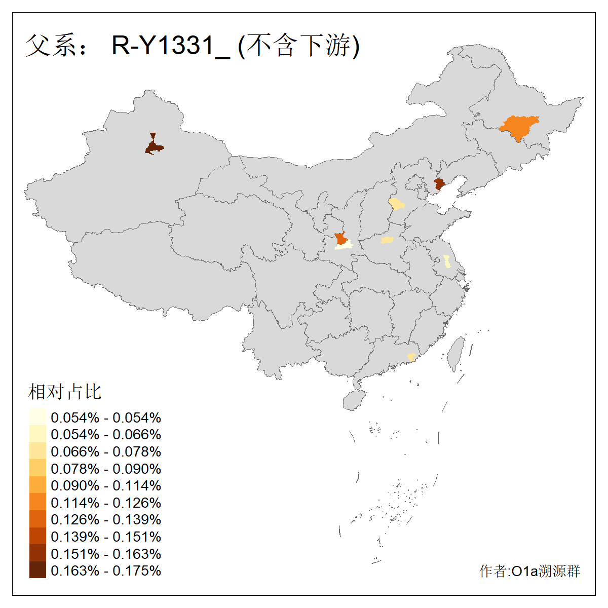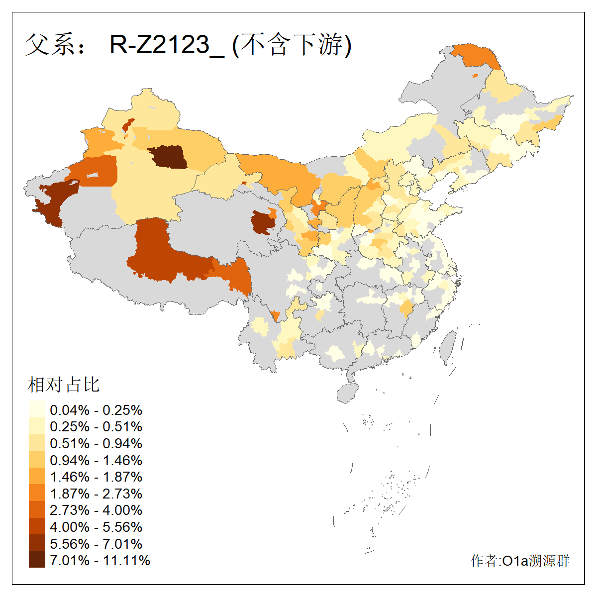 | R_R-Y482_R1_R1a_R-M459_R-M198_R-M417_R-PF6162_R-F992_R-F3105_R-Z2124_R-S4576 | 4160 | 0.100% | 212人(含下游) 王:18 张:17 李:12 卓:10 马:10 刘:9 白:9 陈:9 徐:6 胡:6 高:6 杨:5 赵:5 郑:4 ![]() | 36人(不含下游) 王:4 张:3 白:3 雷:3 马:2 克:1 吴:1 察:1 屈:1 康:1 徐:1 施:1 曹:1 李:1 ![]() |