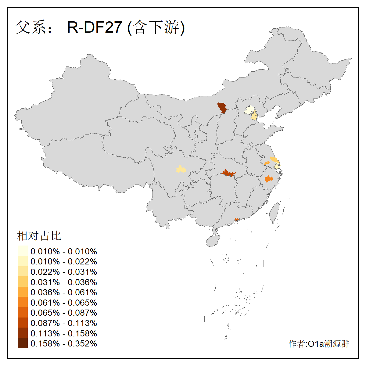 | R_R-Y482_R1_R-M343_R-L754_R-L761_R-L389_R-P297_R-M269_R-L23_R-L51_R-P310_R-L151_R-P312_R-DF27 | 3920 | 0.005% | 12人(含下游) 戴:1 海:1 秦:1 缪:1 路:1 钟:1 ![]() | 1人(不含下游) 戴:1 ![]() |