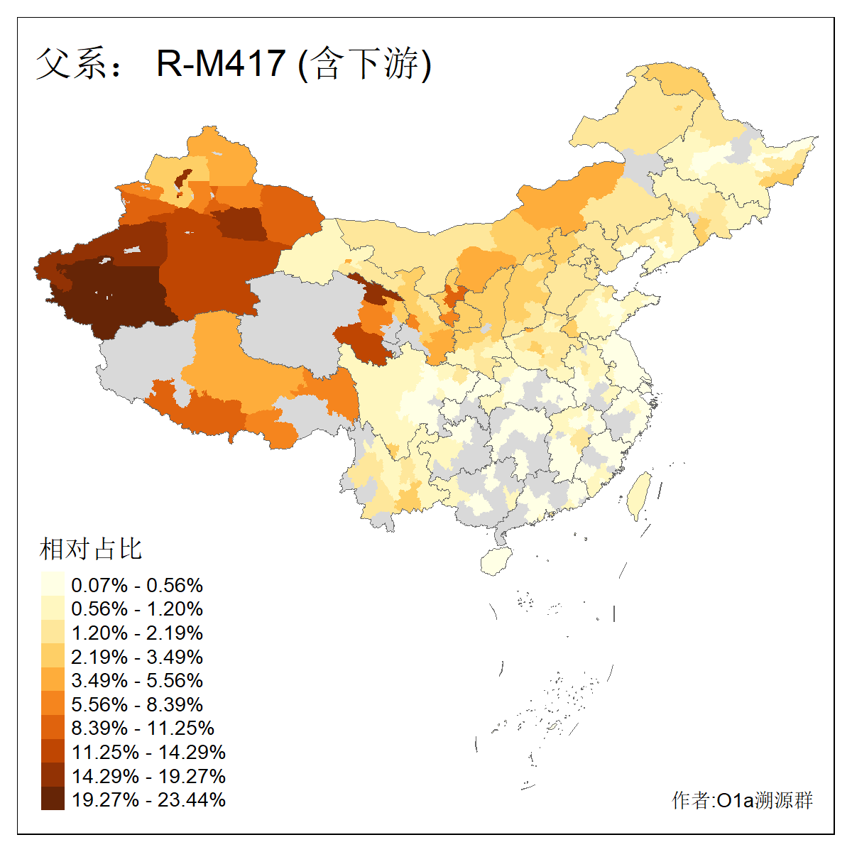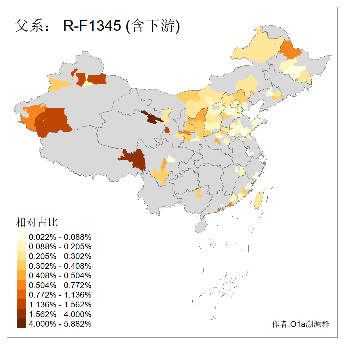 | R_R-Y482_R1_R1a_R-M459_R-M198_R-M417_R-PF6162_R-F992_R-F3105_R-Z2124 | 4370 | 0.788% | 1126人(含下游) 张:85 王:71 李:65 刘:58 马:56 陈:41 赵:36 杨:34 孙:21 高:21 白:19 何:16 郑:14 阿:14 ![]() | 79人(不含下游) 都:7 王:6 何:5 张:5 刘:3 李:3 赵:3 阿:3 马:3 杨:2 陈:2 隋:2 高:2 丁:1 ![]() |