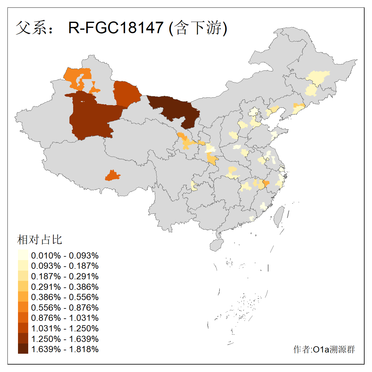 | R_R-Y482_R-M479_R-M124_R-FGC22607_R-P267_R-Y12100_R-FGC12643_R-Y8763_R-FGC17608_R-FGC18148 | 8150 | 0.037% | 80人(含下游) 张:16 马:8 王:4 陈:4 康:3 李:3 刘:2 宋:2 常:2 杨:2 祖:2 米:2 翦:2 艾:2 ![]() | 6人(不含下游) 刘:1 宋:1 石:1 郑:1 马:1 高:1 ![]() |