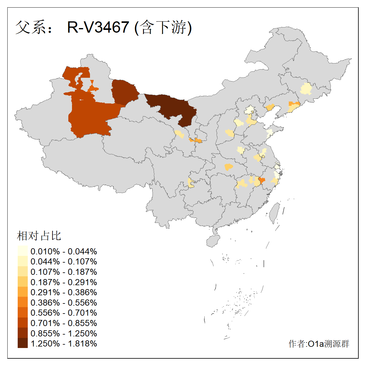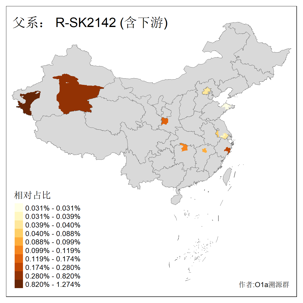 | R_R-Y482_R1_R-M343_R-L754_R-L761_R-L389_R-P297_R-M269_R-L23_R-L51 | 5300 | 0.029% | 140人(含下游) 张:4 杨:3 顾:3 吴:2 安:2 朱:2 李:2 海:2 赵:2 钟:2 马:2 黄:2 一:1 付:1 ![]() | 10人(不含下游) 吴:1 周:1 甘:1 石:1 顾:1 ![]() |